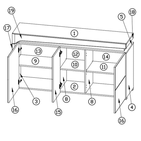 Regular price £139.95Unit price /UnavailableWooden Sideboard With 2 Doors And 3 Drawers - Camaros