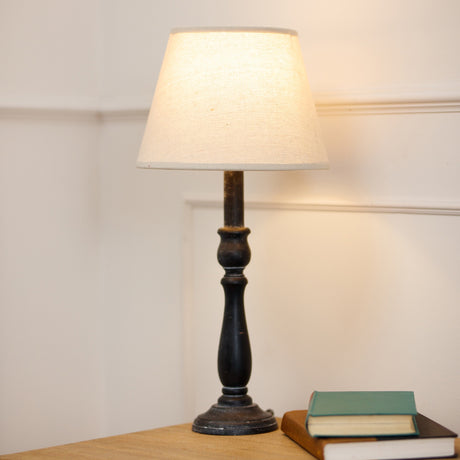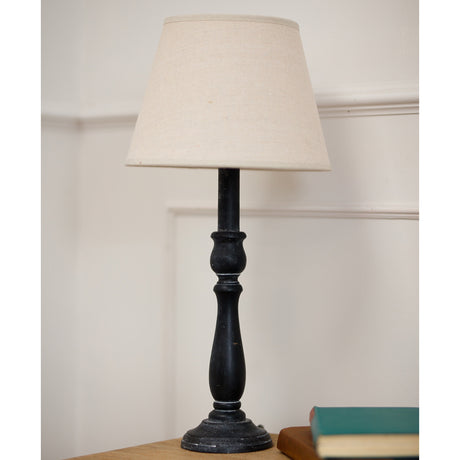 Beige Linen Shade Table Lamp With Column Black Wooden Base - Ravenna