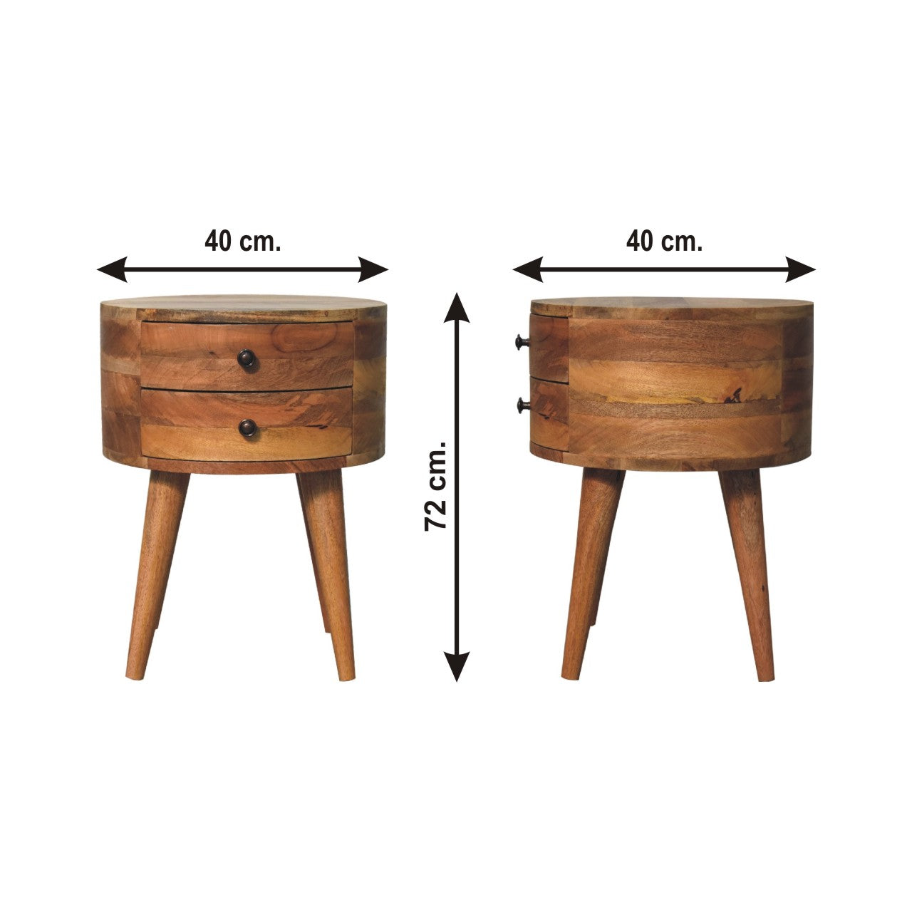 Enhance your bedroom with the elegant Odyssey Solid Mango Wood Bedside Cabinet from CozyFurnitureDirect. Crafted from 100% solid mango wood with a warm Chestnut or Oak stain-based finish, this bedside cabinet features a smooth, circular design that adds a soft, contemporary touch to your space. Equipped with two practical drawers, each adorned with shiny knobs for effortless access, the Odyssey bedside cabinet combines style with functionality. Its versatile design makes it a perfect accent piece that complements a variety of interior styles. Handcrafted sustainably and delivered securely across the UK, this piece brings quality and charm to your home.