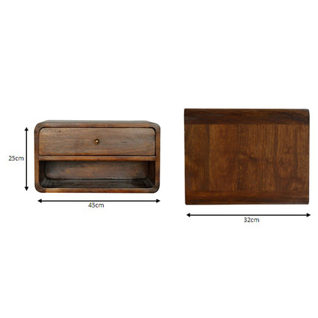 Solid Mango Wood Bedside Cabinet Wall Mounted With 1 Drawer - Birmingham