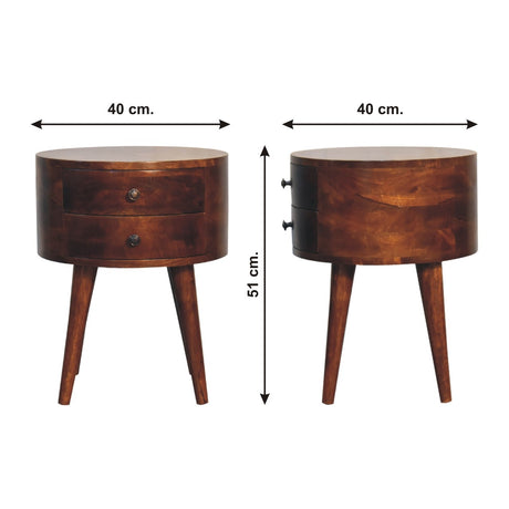 Solid Mango Wood TV Stand Circular With 2 Drawers - Birmingham