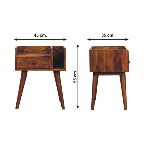 Solid Mango Wood Bedside Cabinet Tripod With 2 Drawers - Odyssey