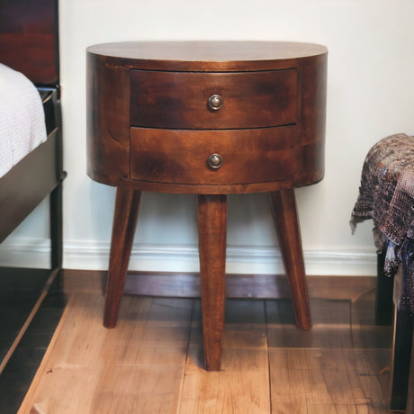 Solid Mango Wood Bedside Cabinet Curve With 2 Drawers - Birmingham