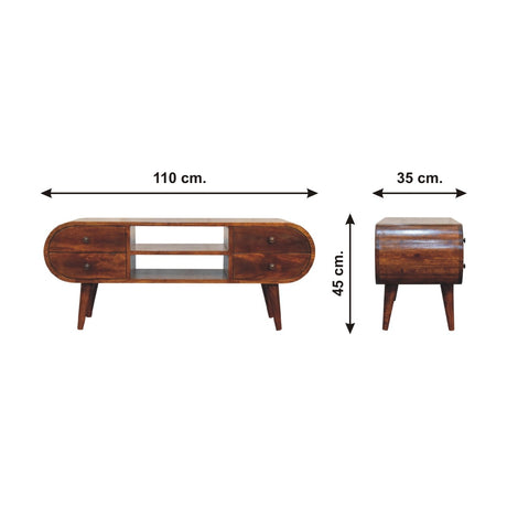 Solid Mango Wood TV Stand Circular With 4 Drawers - Birmingham