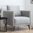 Bring contemporary sophistication and comfort to your living space with the Rohe Fabric Armchair with Black Metal Legs from CozyFurnitureDirect. Upholstered in a soft light grey wool-effect fabric, this armchair combines sleek modern design with everyday relaxation. The Rohe features fixed seat cushions with elegant centre piping details and removable bolster cushions for enhanced comfort and style. Supported by slim black metal legs, it offers a refined aesthetic that blends seamlessly into both urban and minimalist interiors. Perfect as a standalone statement piece or part of the full Rohe collection, this armchair adds a touch of modern luxury to any UK home.
