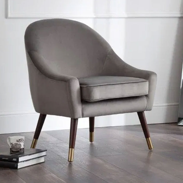 Elevate your living space with the Elliot Velvet Armchair with Oak Gold Legs, available at CozyFurnitureDirect. This statement armchair blends luxury and comfort, featuring elegantly curved arms and a softly contoured back upholstered in rich grey velvet. The warm oak legs, tipped with timeless gold accents, add a refined touch of glamour while ensuring stability and durability. Whether placed in a lounge, reading nook, or bedroom corner, the Elliot armchair brings sophistication and cosiness to any interior, making it a perfect addition to contemporary and classic UK homes alike.