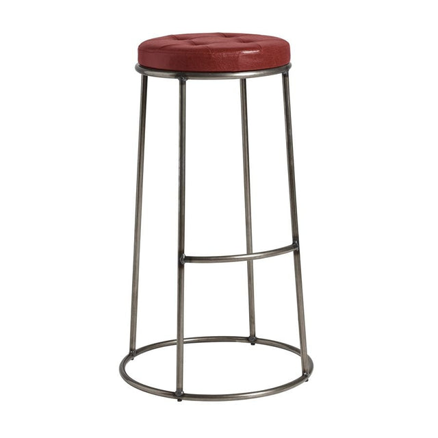Steel Bar Stool With Faux Leather Seat Pad And Black Metal Frame - Max