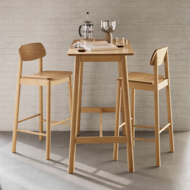 Create a welcoming and stylish spot for dining, drinks, and conversation with the Barlow Wooden Bar Table and 2 Bar Stools with Back, available exclusively at CozyFurnitureDirect. Designed by Danish designer Lasse Cha Pedersen, this set blends Scandinavian elegance with everyday practicality, making it perfect for compact kitchens, modern apartments, or casual entertaining spaces. The matt oak finish brings warmth to your interior, while the minimalist silhouette complements a wide variety of decor styles. The ergonomically crafted bar stools feature supportive backrests and integrated footrests for exceptional comfort - ideal for everything from morning coffees to evening cocktails. Purpose-built for small spaces, the table and stools work together seamlessly to maximise both function and style without compromising on comfort. Crafted with quality, comfort, and convenience in mind, the Barlow set is easy to assemble and designed to be a long - lasting, timeless addition to your home.