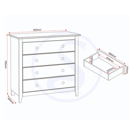 Wooden Chest Of 4 Drawers Wide - Oslo