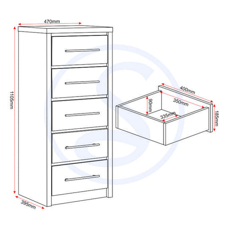 Wooden Chest Of 5 Drawers Narrow - Se…