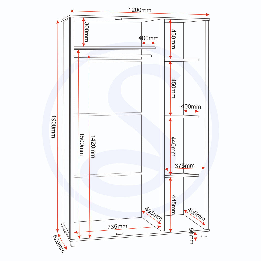 - Generous 3-door wardrobe with large hanging and shelving areas