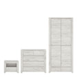 Create a harmonious and stylish bedroom sanctuary with the Wooden 3 Piece Bedroom Furniture Set - Angel, exclusively available at CozyFurnitureDirect. This contemporary set, finished in hard-wearing white crafted oak melamine, offers an elegant and durable solution suitable for all age groups. The set includes a compact 1 drawer bedside cabinet, a spacious 5 drawer chest of drawers, and a practical 2 door 2 drawer fitted wardrobe, providing ample storage and organisation for any bedroom. Designed with easy-glide drawer runners for smooth operation and manufactured to high standards in Poland, the Angel set combines modern sophistication with everyday functionality. Its clean lines and durable laminated surfaces resist scratches, moisture, and heat, ensuring lasting appeal in busy UK homes. Together, these pieces offer a cohesive, space-efficient solution that complements a wide variety of bedroom styles.