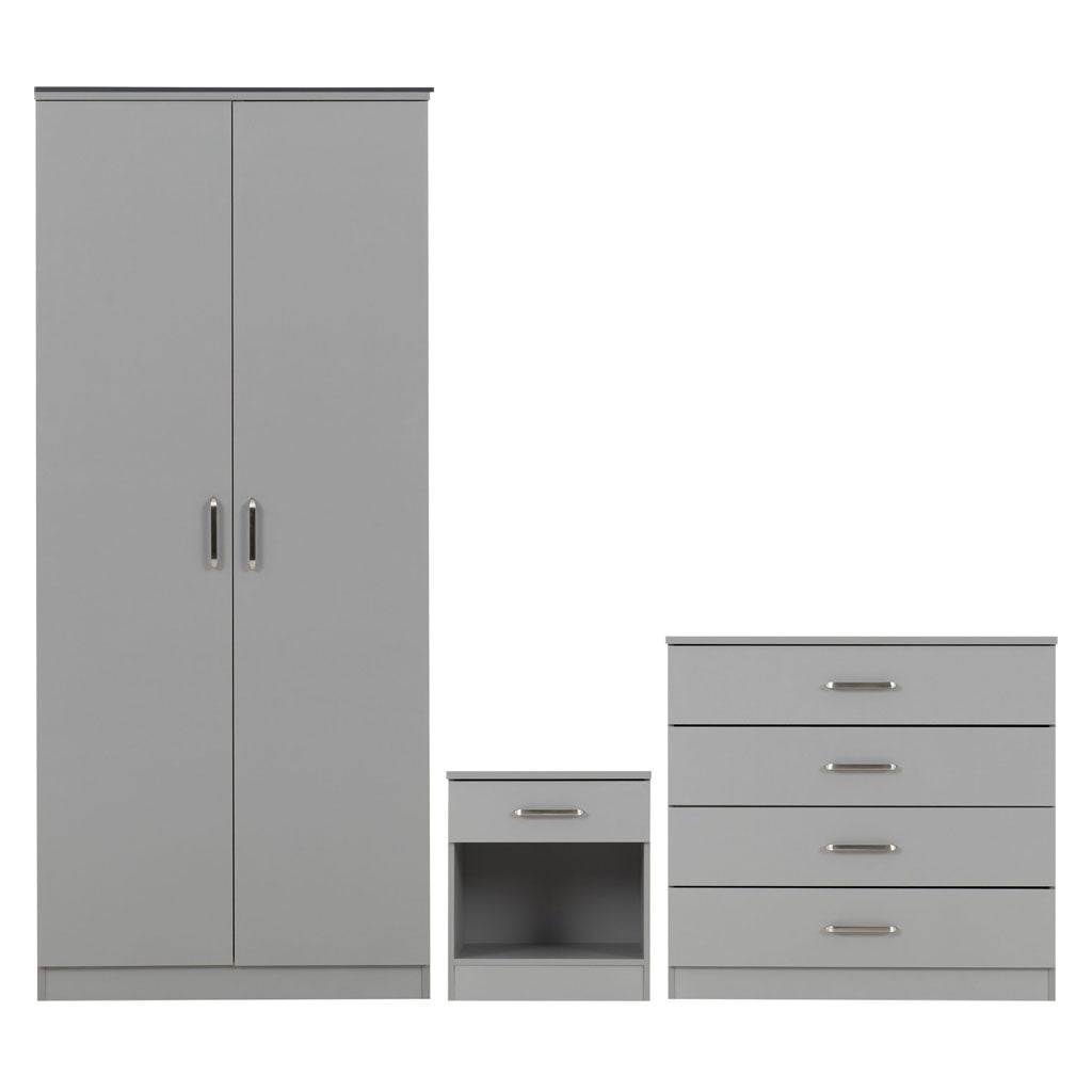 - Includes wardrobe, chest of drawers, and bedside cabinet for a complete bedroom solution