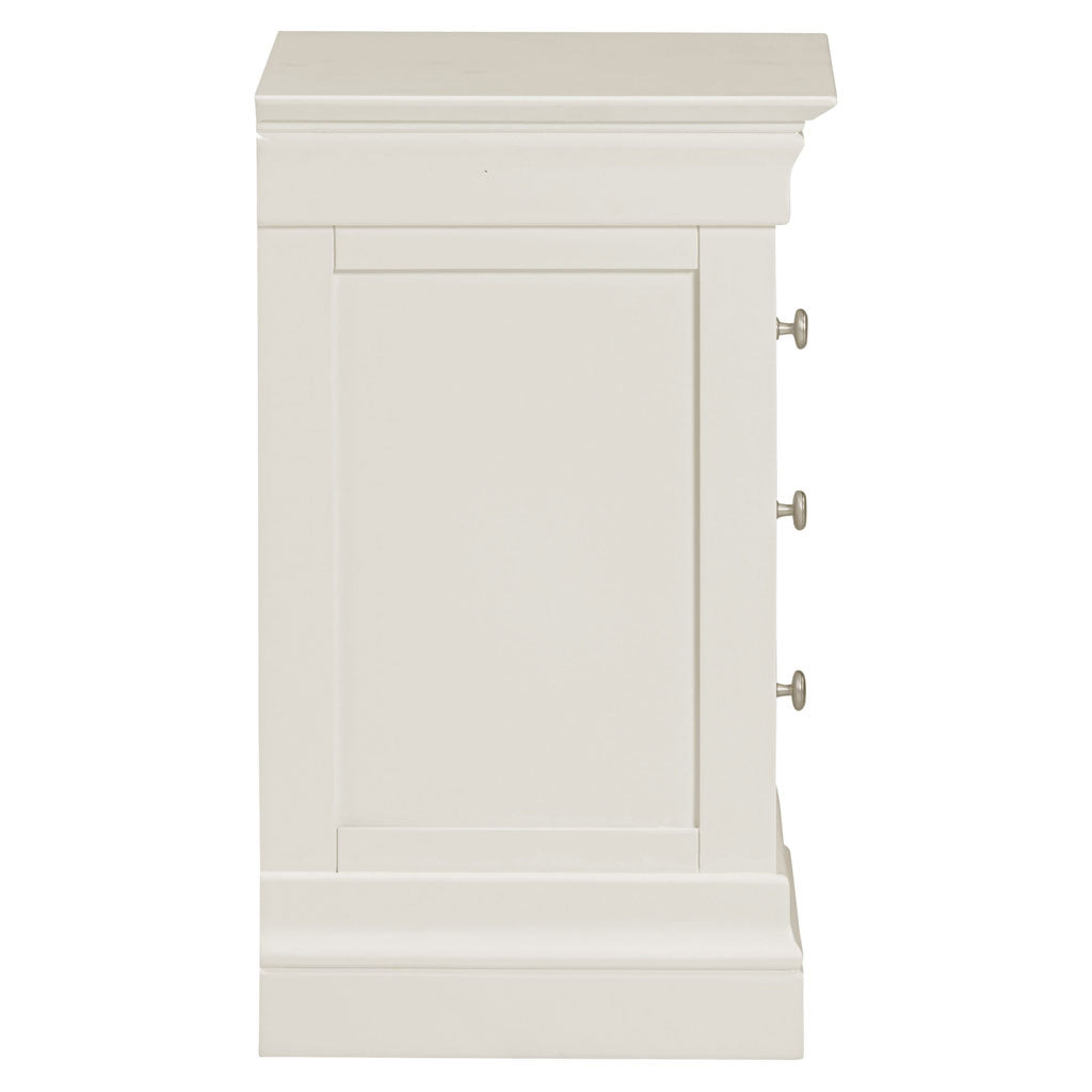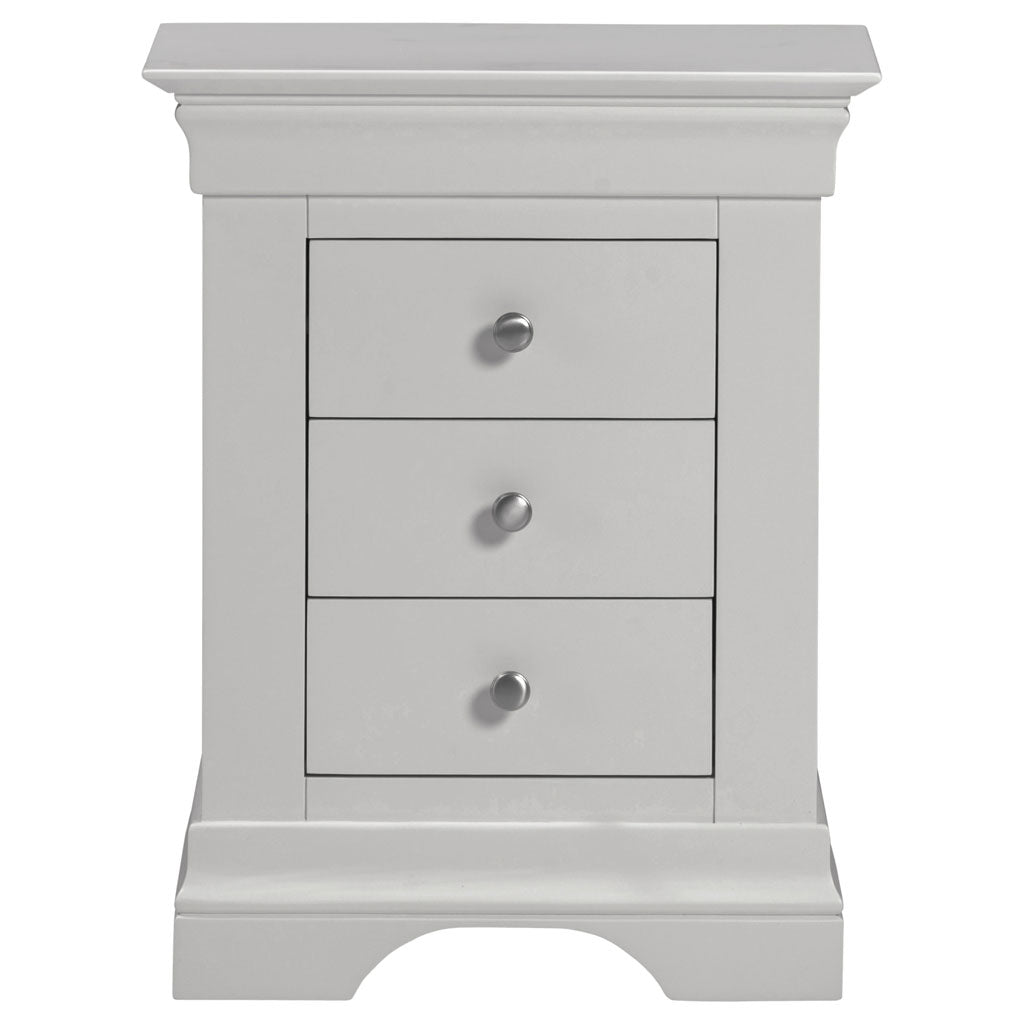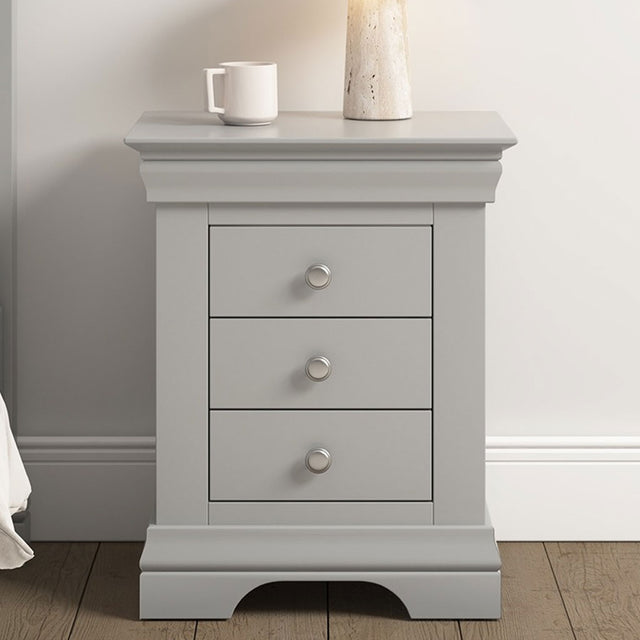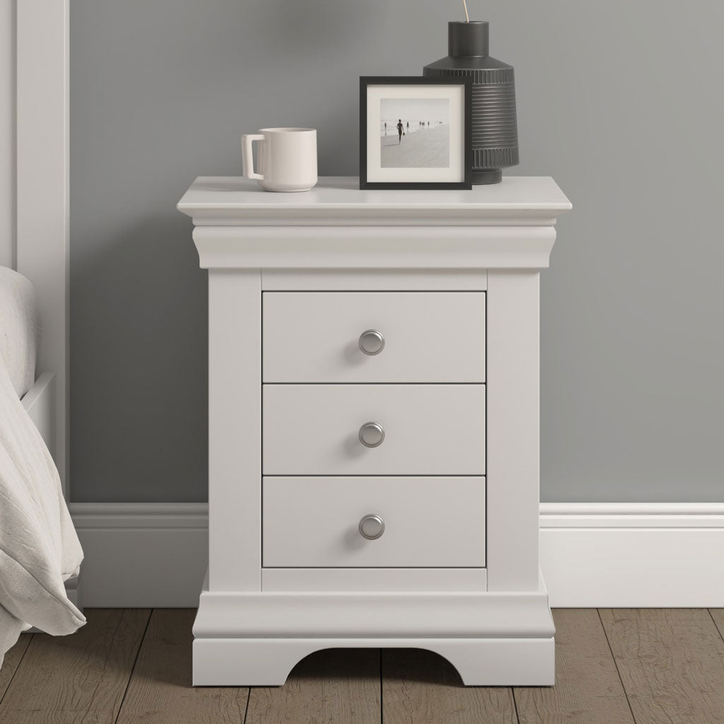 Add refined storage to your bedroom with the Bordeaux Wooden Bedside Cabinet With 3 Drawers from CozyFurnitureDirect. Crafted from High - quality hardwood and finished with a smooth matt paint, this bedside cabinet blends classic design with modern durability, perfectly suited for UK interiors. Featuring three spacious drawers with sturdy plywood bases and elegant metal and wooden handles, it offers practical storage for essentials within easy reach. The robust 18mm thick top and protective plastic feet ensure lasting quality and stability. The Bordeaux bedside cabinet is a stylish and reliable addition to any bedroom, combining functionality with timeless appeal.