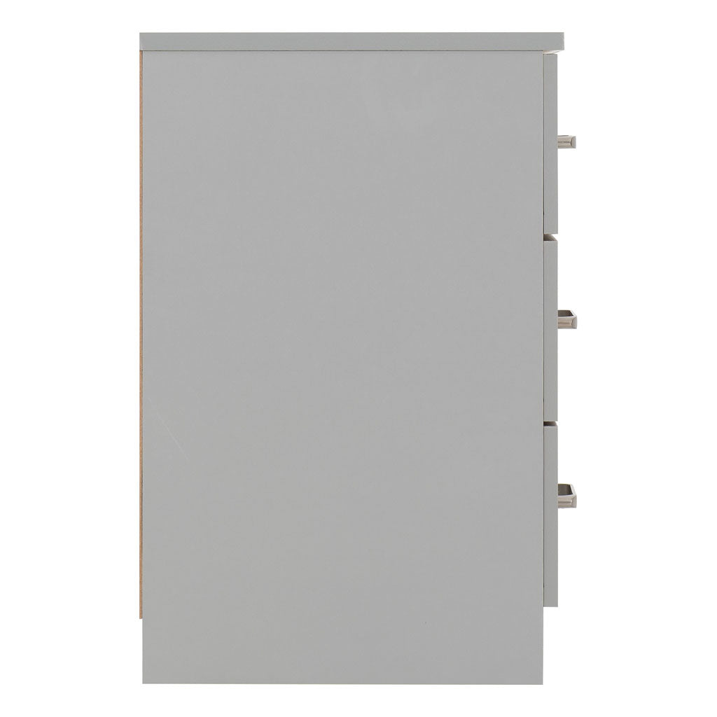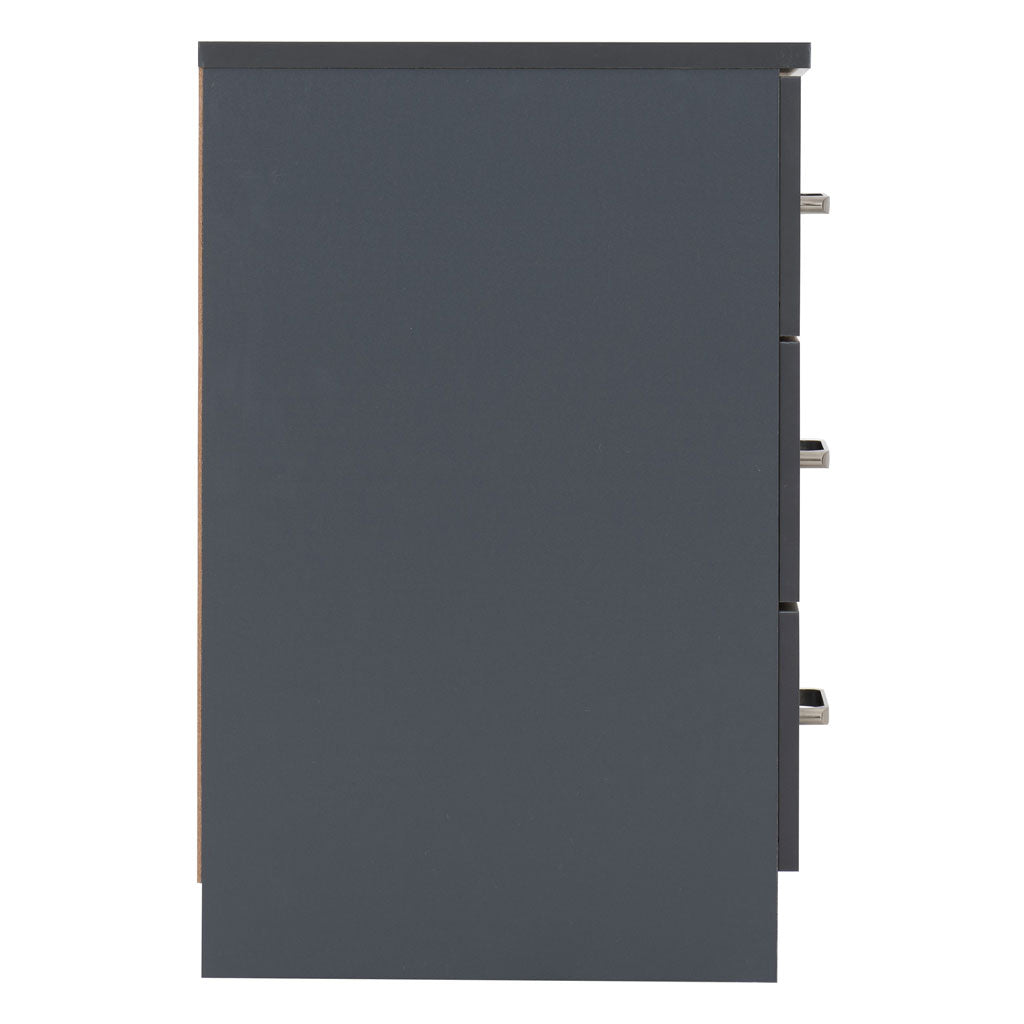 Upgrade your bedroom's organisation and style with the Dakota Wooden Bedside Cabinet With 3 Drawers from CozyFurnitureDirect. This sleek cabinet is thoughtfully crafted for UK homes, featuring a modern blend of composite board construction and a sophisticated paper veneer finish. With three spacious drawers, robust metal runners and handles, and a smooth MDF base, the Dakota cabinet provides ample storage for night-time essentials, keeping clutter at bay. The sturdy 15mm thick top is perfect for lamps or decorative pieces, while durable plastic feet safeguard your floors. Ideal for both compact and spacious bedrooms, this timeless design fits effortlessly into contemporary British interiors.