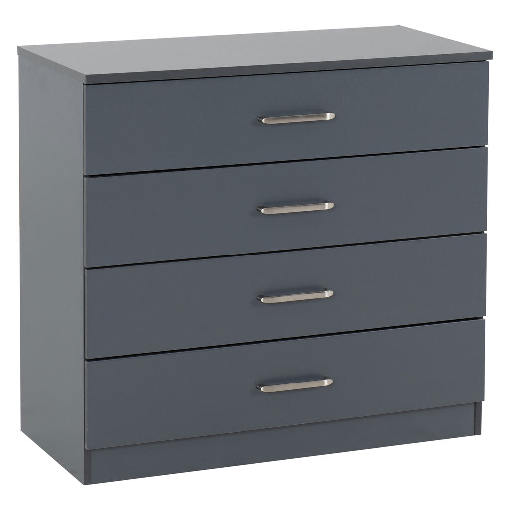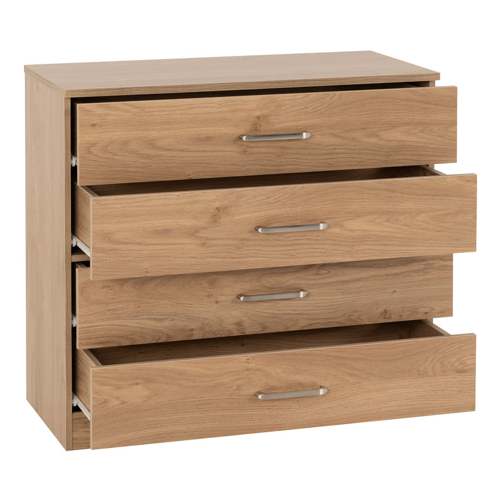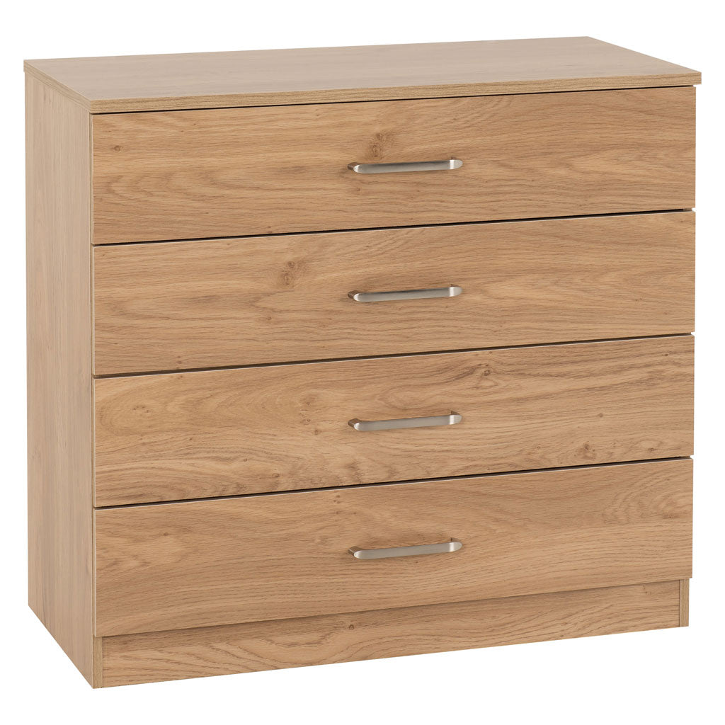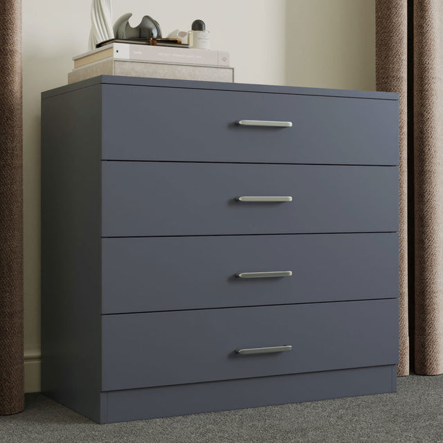 Enhance your bedroom or living space with the Dakota Wooden Chest of 4 Drawers from CozyFurnitureDirect, expertly designed for style and practicality in UK homes. This elegant chest offers generous storage with four spacious drawers, crafted from durable composite board and finished with a refined paper veneer that complements contemporary British interiors. Each drawer features smooth metal runners and sturdy metal handles for effortless use, while the robust MDF back panel and drawer base ensure long - lasting strength. The 15mm thick top provides a sturdy surface for decorative items or daily essentials. Safety is also a priority with the included anti-tip strap, making it a reliable addition to family homes.