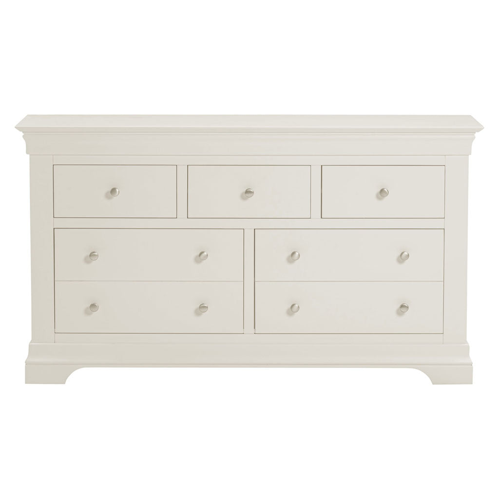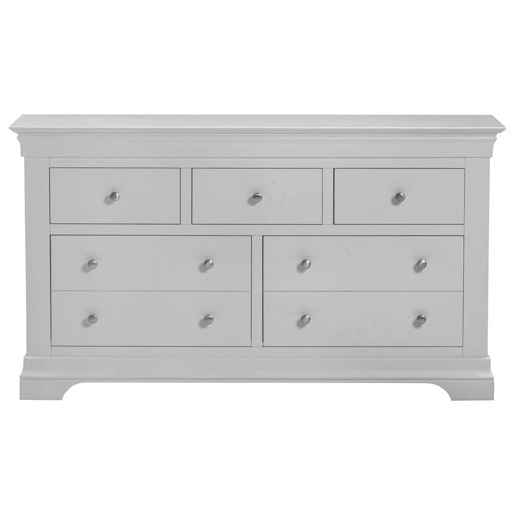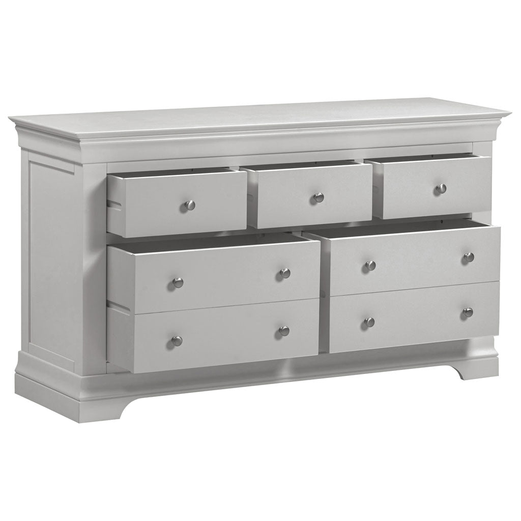Enhance your bedroom organisation with the Bordeaux Wooden Chest Of 5 Drawers from CozyFurnitureDirect. Crafted from sturdy MDF and oak, finished in an elegant matt paint, this chest offers a stylish storage solution ideal for modern British homes. Featuring five spacious drawers three smaller and two larger that glide smoothly on pine runners with durable plywood bases, it provides versatile options for clothing, accessories and linens. Complemented by sophisticated metal and wooden handles, protective plastic feet and a robust 18mm thick top, the Bordeaux chest combines classic design with everyday practicality and lasting quality.