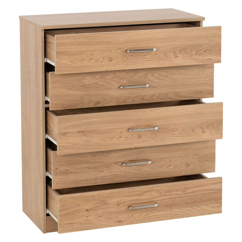 • Five large drawers offer generous, organised storage for clothes, accessories, or essentials