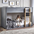 Turn bedtime into a stylish and cosy experience with the Daytona Velvet Bunk Bed with Ladder, available at CozyFurnitureDirect. Expertly upholstered in luxurious grey velvet, this bunk bed brings softness, comfort, and elegance to your child's bedroom. Featuring a sturdy 3-step woodgrain ladder for safe and easy access to the top bunk, it's designed with both practicality and safety in mind. The chic panelled effect on both the front and back enhances the bed's sophisticated charm, creating a snug and inviting space perfect for sleepovers, bedtime stories, and restful nights. A beautiful blend of function and style, the Daytona bunk makes a standout addition to any UK family home.