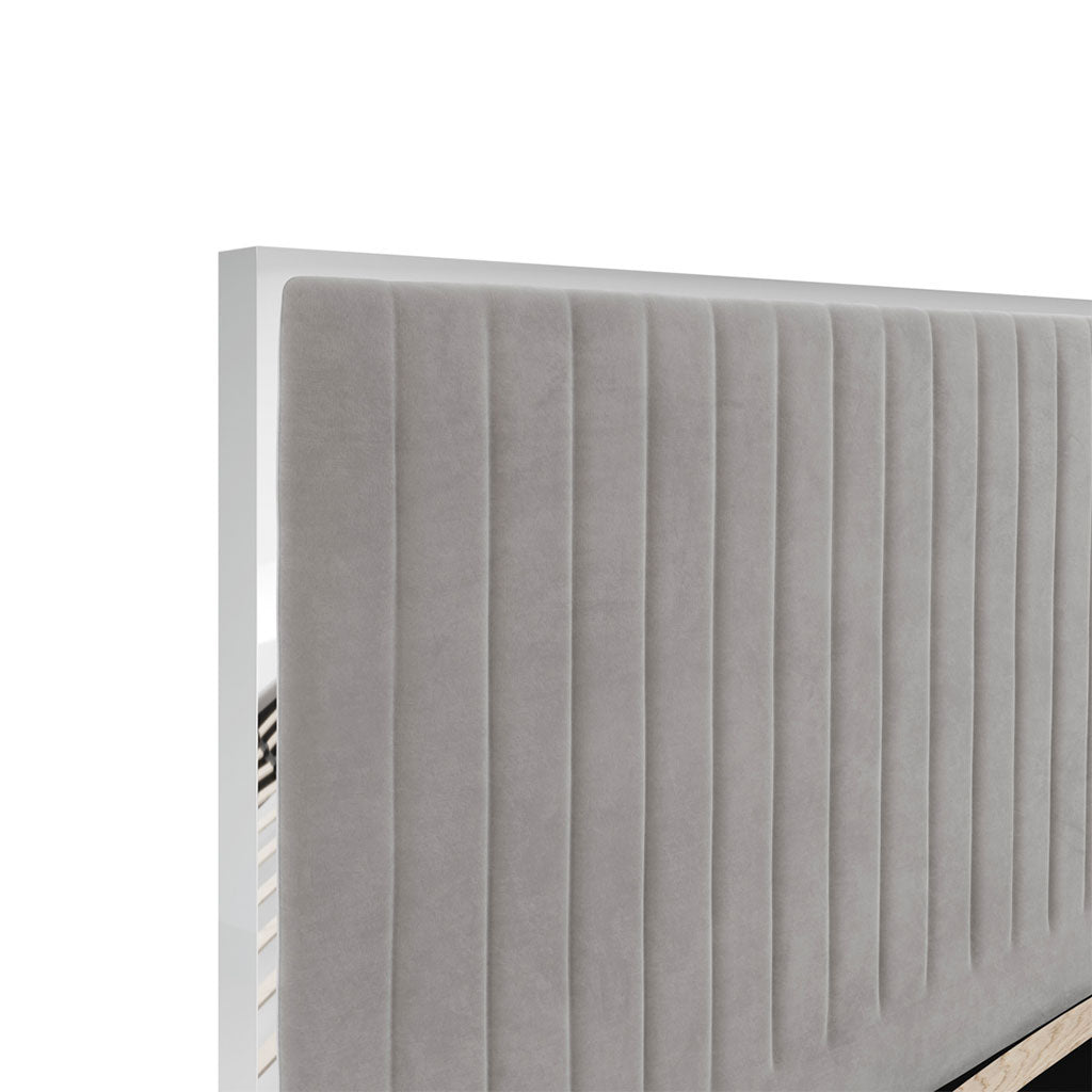 Enhance your bedroom with refined elegance and comfort with the Velvet Double Bed - Berkeley, available exclusively at CozyFurnitureDirect. Upholstered in sumptuous velvet, this bed exudes sophistication while offering a soft and inviting surface. The tall, fluted headboard framed in sleek matte black metal creates an eye-catching focal point, adding depth and modern allure to your space. The neutral monochrome palette blends seamlessly with any interior style, from contemporary minimalism to classic charm. Complete with a sprung slatted base for superior comfort and support, the Berkeley bed brings both luxury and practicality to UK homes.