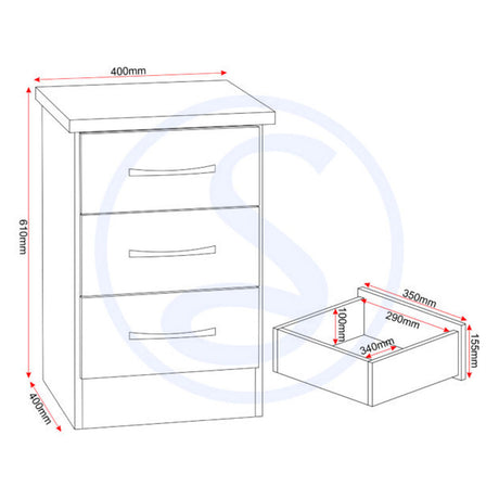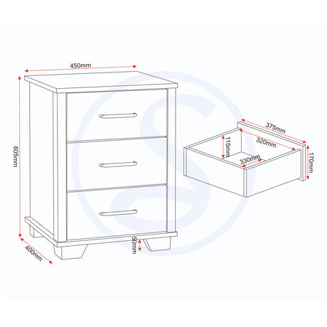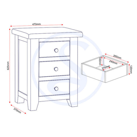 Wooden Bedside Cabinet 3 Drawers - Ma…