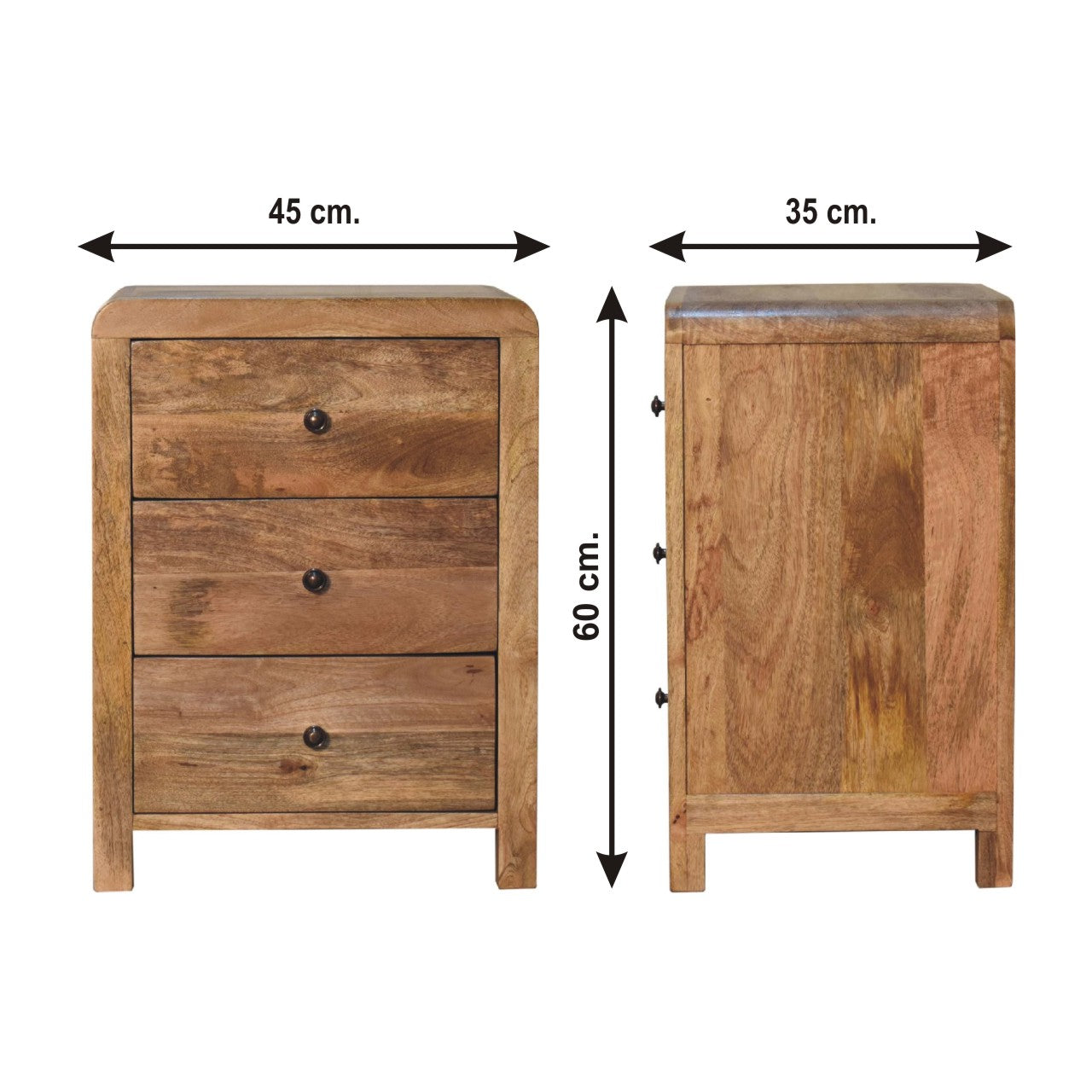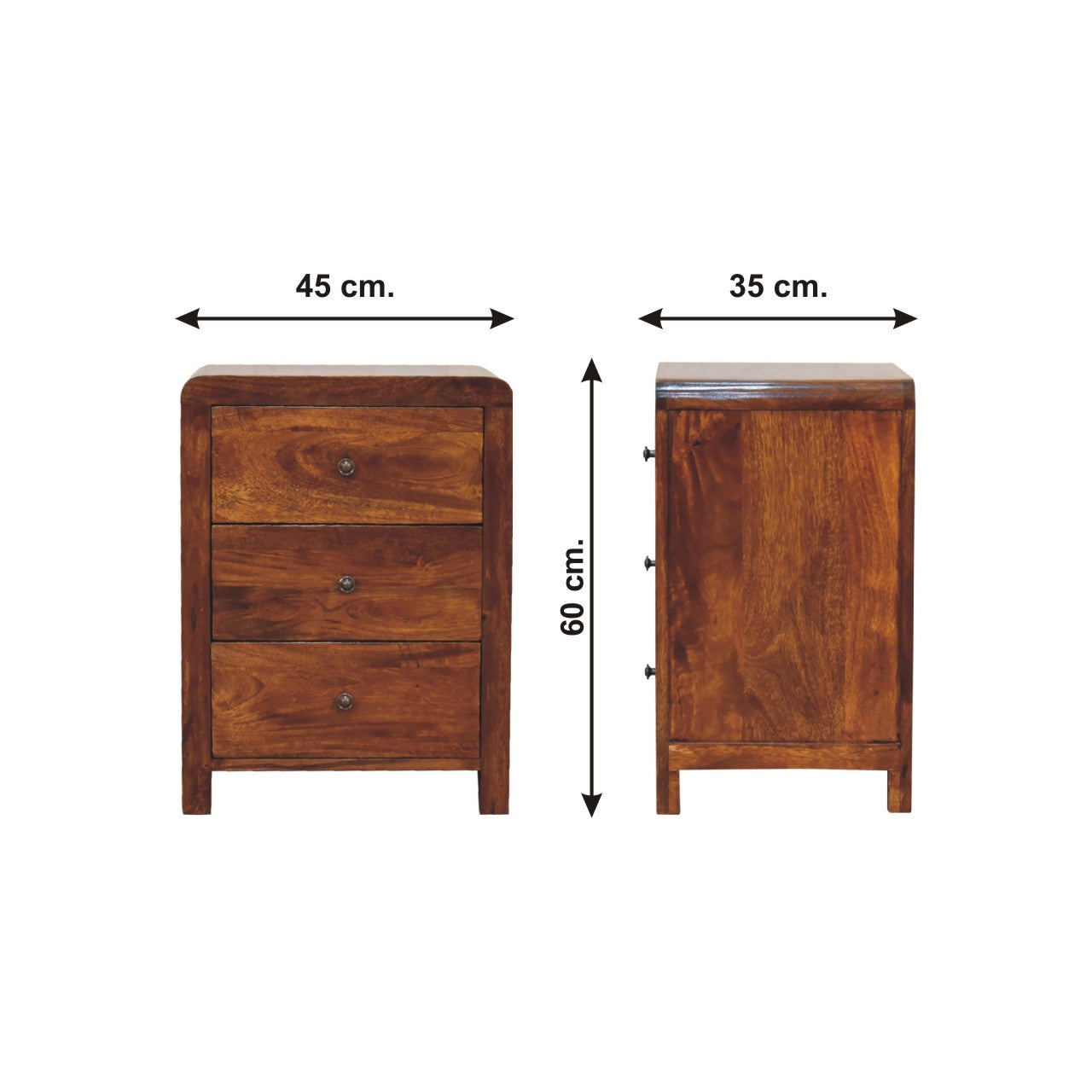 Solid Mango Wood Bedside Cabinet With 3 Drawers - Aspen