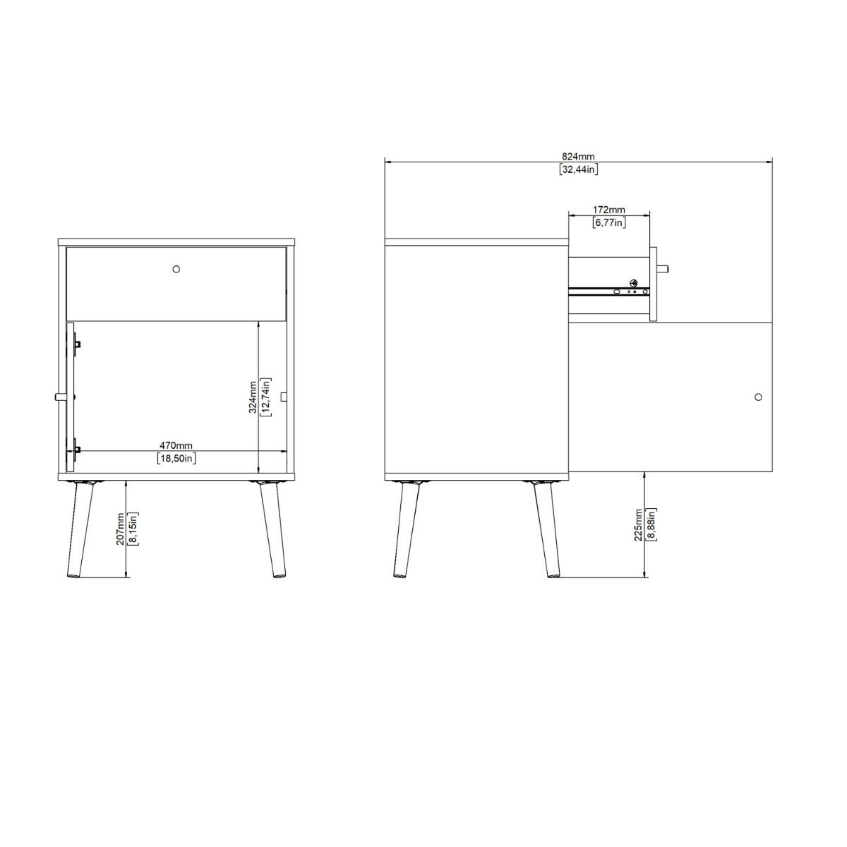 - 1 drawer and 1 cupboard compartment, providing versatile bedside storage solutions
