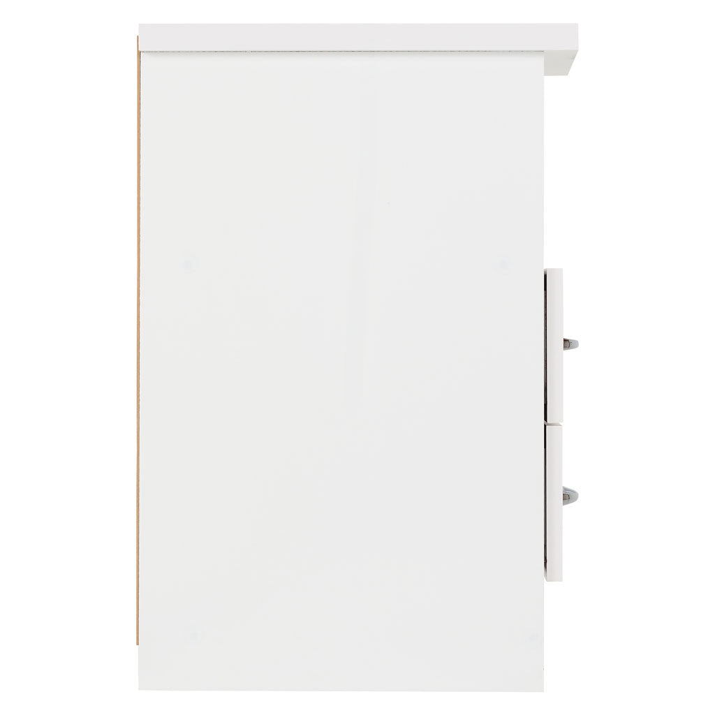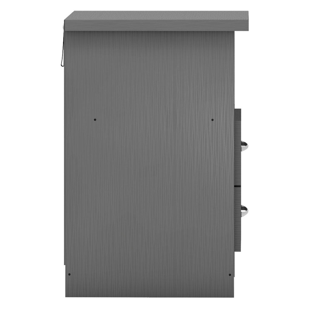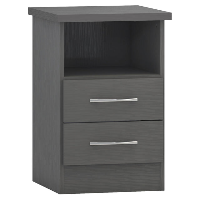 Enhance the functionality and style of your bedroom with the Nevada Wooden Bedside Cabinet with 2 Drawers, available exclusively at CozyFurnitureDirect. Designed to provide practical storage in a compact form, this bedside cabinet is crafted from durable composite board and finished with a sophisticated 3D paint-effect and plastic veneer. The two spacious drawers feature smooth metal runners and contemporary metal handles, perfect for keeping essentials neatly organised and within easy reach. The open shelf offers additional storage or display space, while sturdy plastic feet provide stability and protect your flooring. Ideal for UK bedrooms seeking a modern yet timeless bedside storage solution.