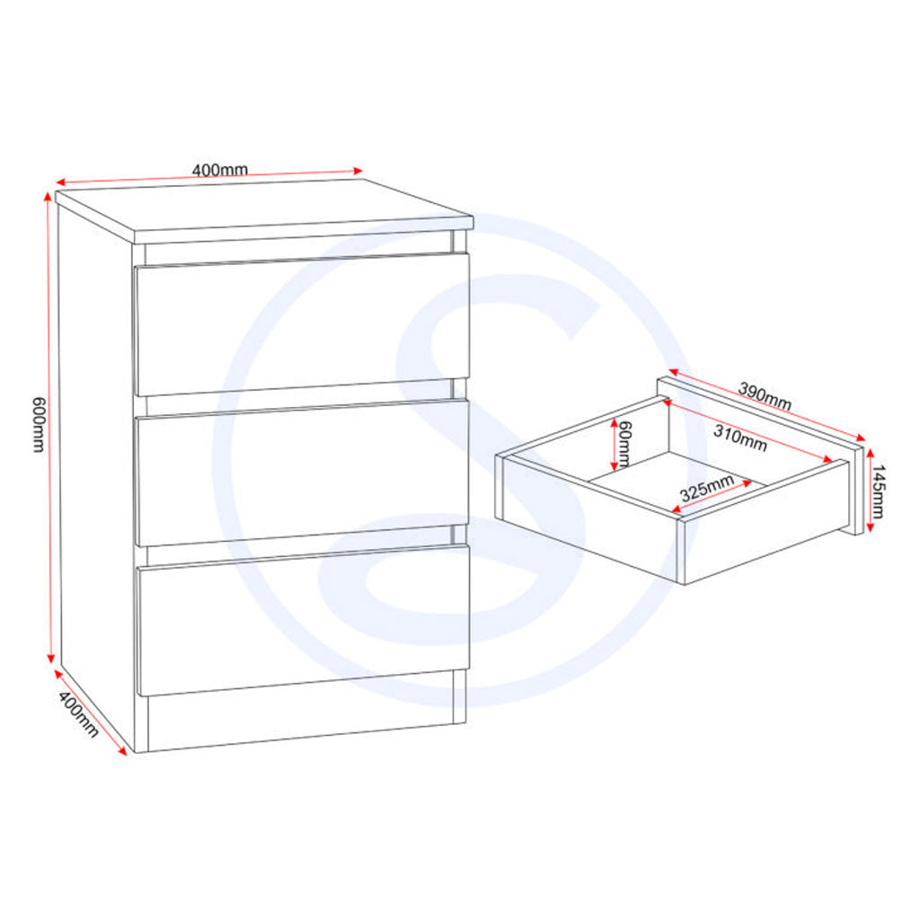 - Elegant wooden bedside cabinet with 3 spacious drawers