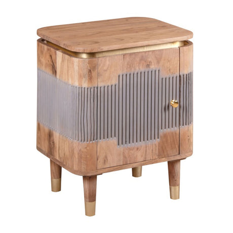 Solid Mango Wood Bedside Cabinet With 1 Door And 1 Drawer - Artwork