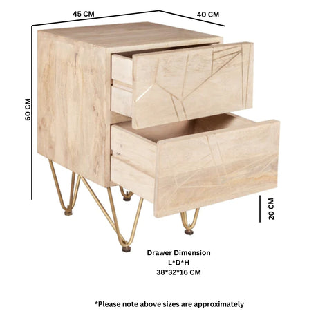 In stockRegular price £159.95Unit price /UnavailableSolid Mango Wood Bedside Cabinet With 2 Drawers - Light Gold
