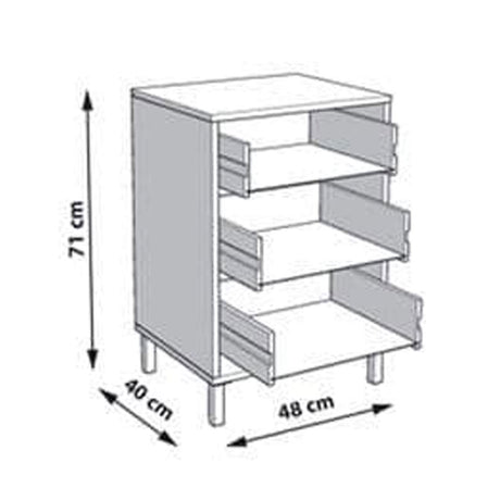 Wooden Bedside Cabinet With 3 Drawers - Lima