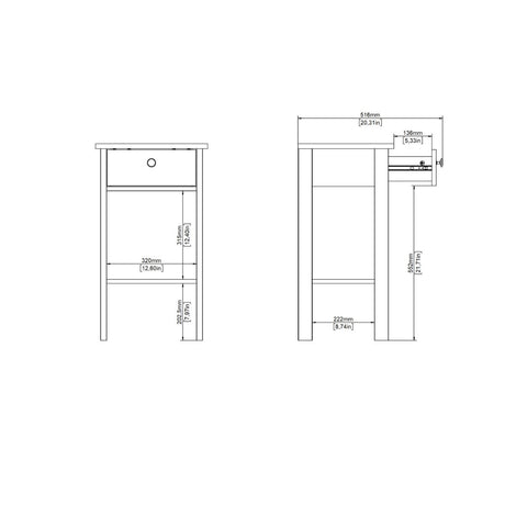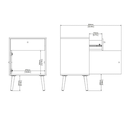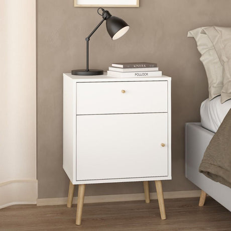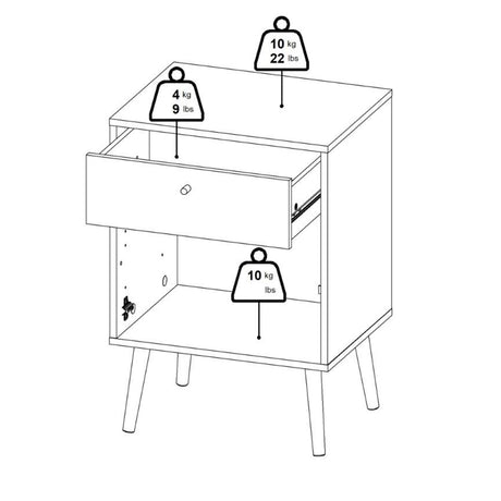 Wooden Bedside Cabinet With 1 White Front Drawer - Ikast