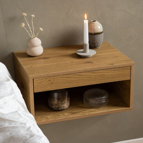 Metal Bedside Cabinet Wall Mounted With 1 Oak Drawer - Joliet