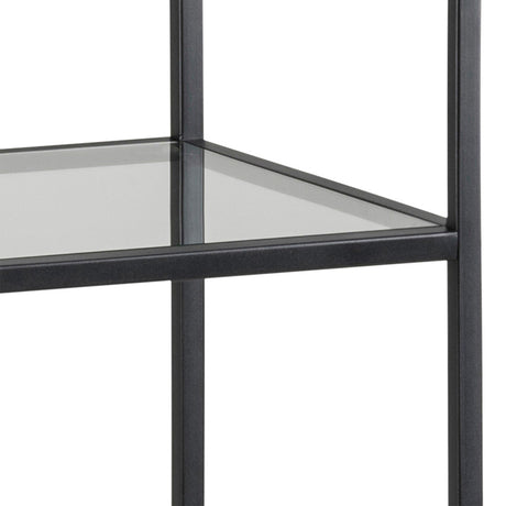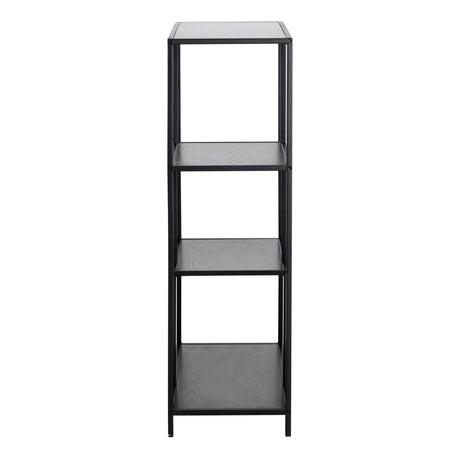 Metal Bookcase Narrow With 3 Glass Shelves - Seaford