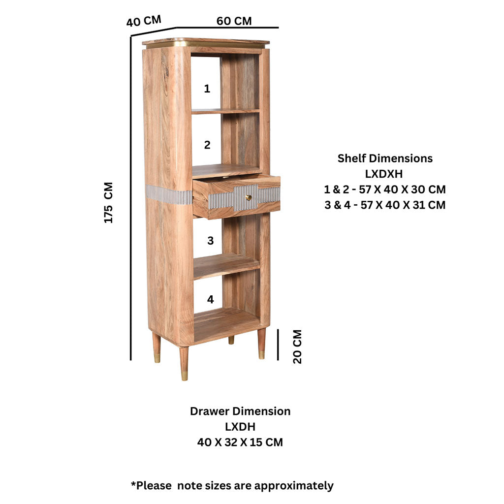 Solid Acacia Wood Bookcase With 1 Drawer And 4 Shelves - Wilton