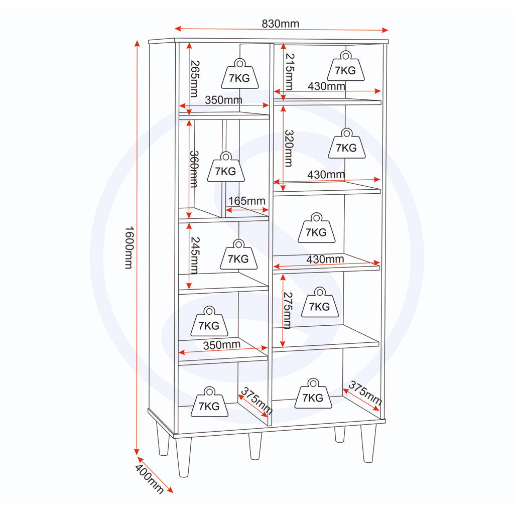 • Cupboard Second Shelf (Left/Right): W165 x D375 x H360 mm