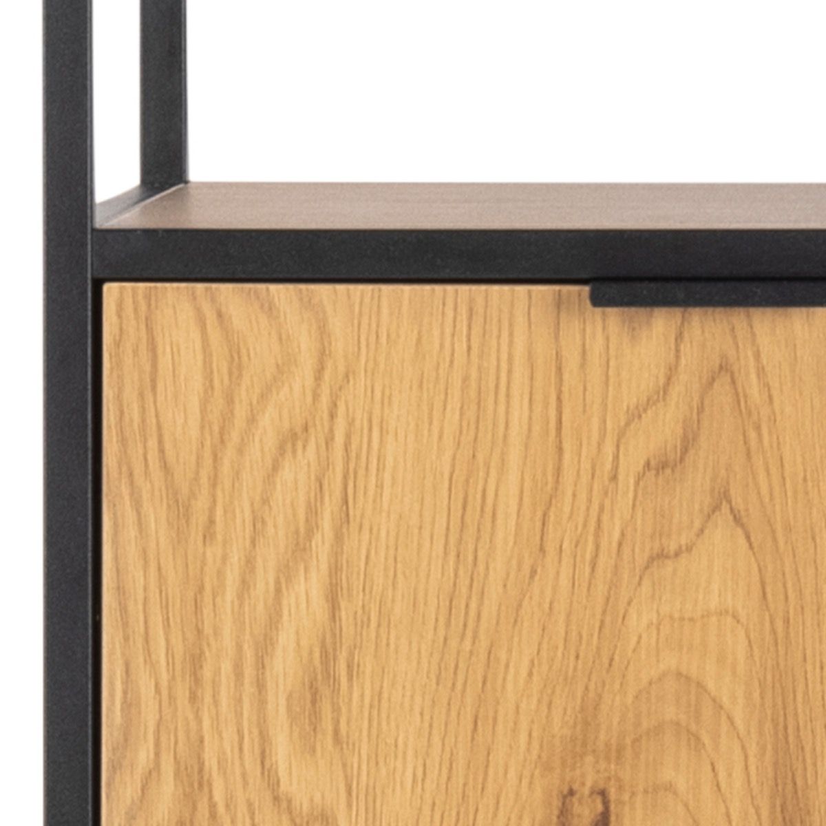 The Swindon Wooden Bookcase with 2 Doors, 3 Drawers, and 2 Shelves, available at CozyFurnitureDirect, stands out with a bold asymmetrical design that combines form and function for modern UK interiors. Crafted with a matte black powder-coated steel frame and warm wild oak surfaces, this bookcase offers ample storage options including two doors, three drawers, and two open display shelves. Its melamine surface ensures durability and easy maintenance, making it a striking and practical focal point for any living or working space.