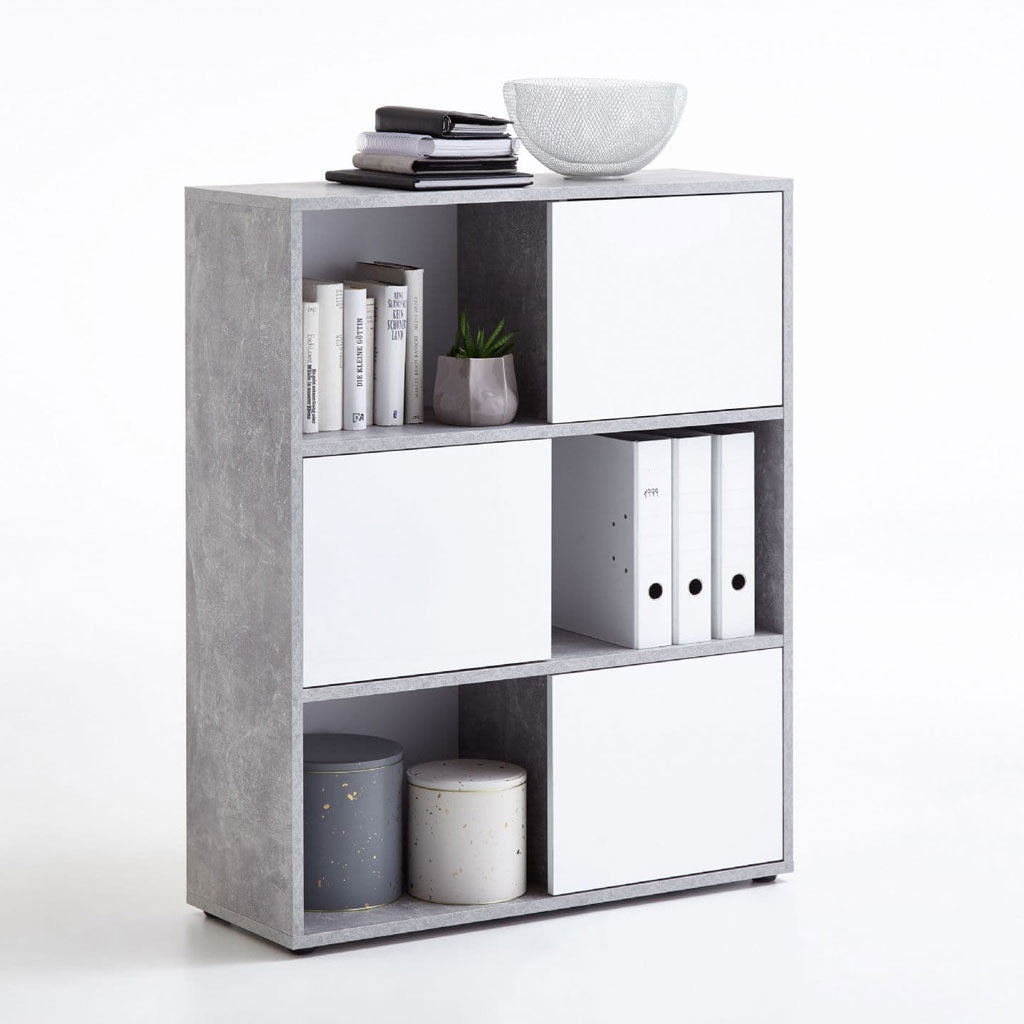 Transform your living space with the Wooden Bookcase With 3 Doors - Lumberton, available at CozyFurnitureDirect. The Lumberton bookcase features a contemporary concrete grey and white finish, bringing modern style and practical storage to any room. With three doors and three open compartments, it offers versatile options for organising books, decor, and everyday essentials. The flexible door layout lets you customise its appearance to suit your space, while the compact design fits well in a variety of settings. Measuring 111cm high, 90cm wide, and 33cm deep, this flat-packed bookcase keeps your home both stylish and organised.