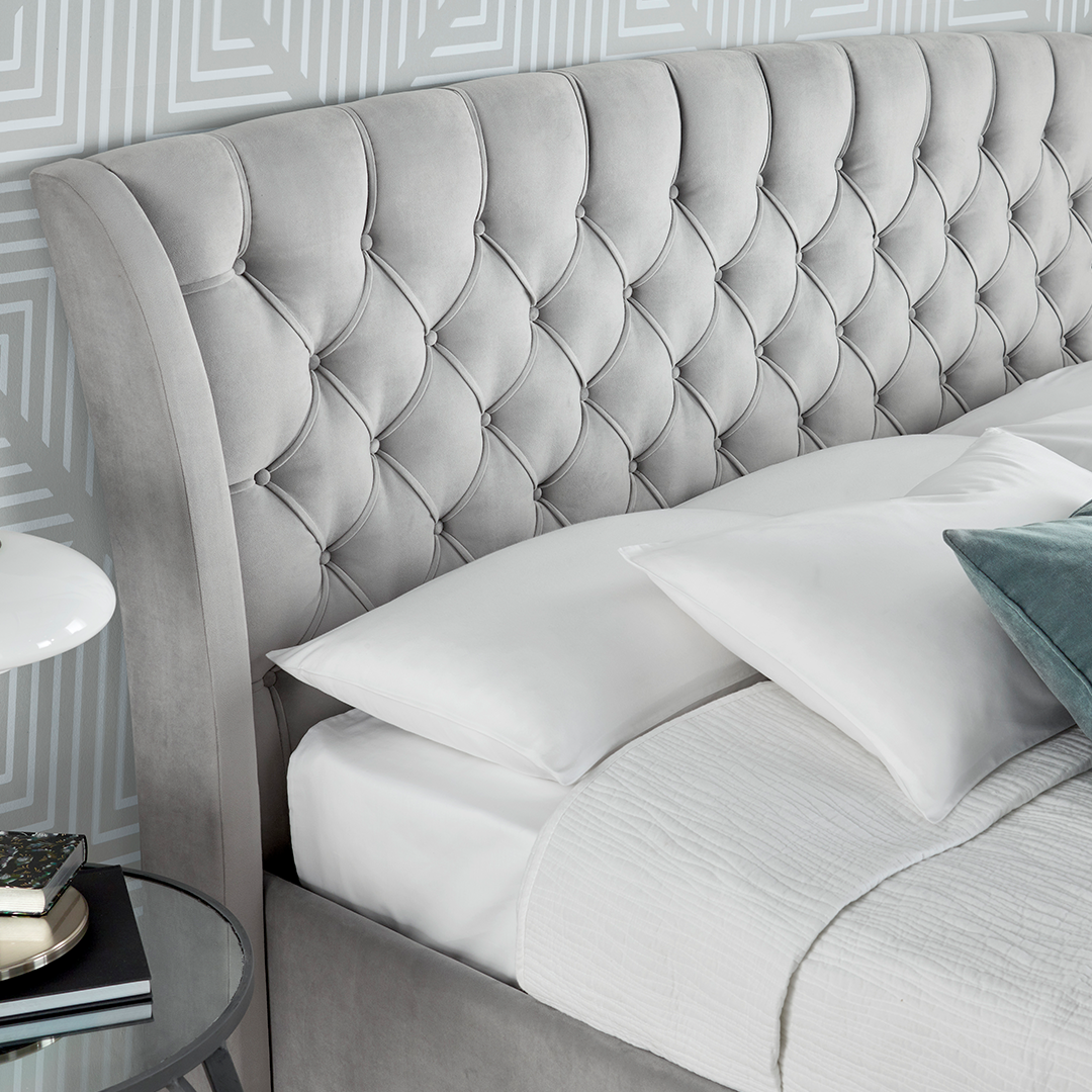 - Elegant deep-diamond buttoned headboard for standout sophistication