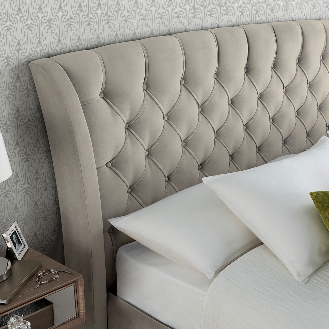 - Luxurious soft-touch velvet fabric in beautiful neutral upholstery