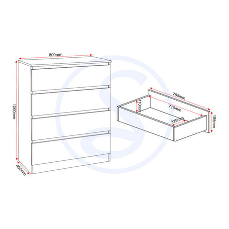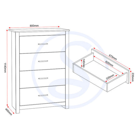 Wooden Chest Of 4 Drawers Wide - Oslo