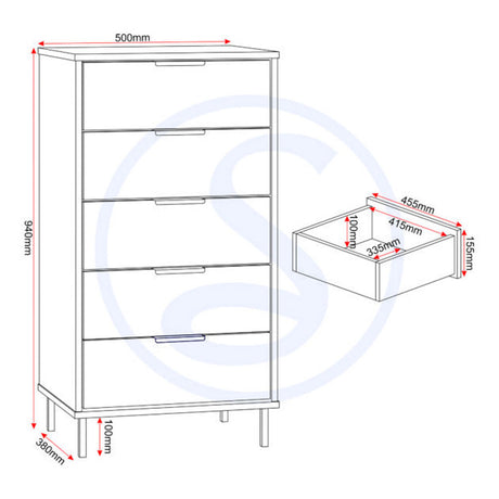 Wooden Chest Of 5 Drawers Narrow - Os…