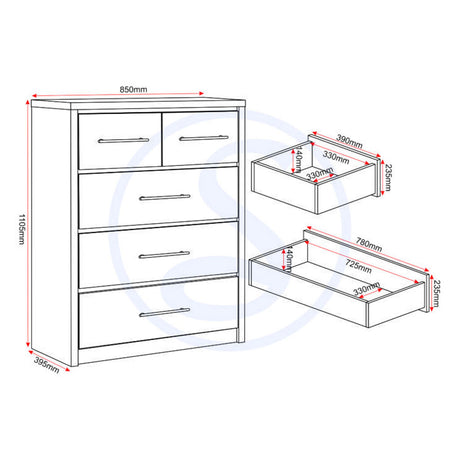 Wooden Chest Of 5 Drawers Narrow - Se…