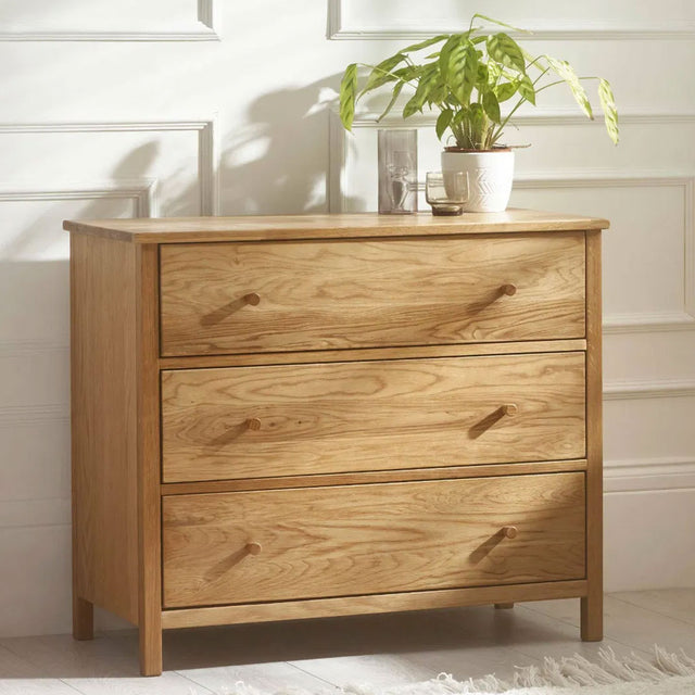 Keep your bedroom stylishly organised with the Coxmoor Wooden Chest of 3 Drawers, available at CozyFurnitureDirect. Crafted from solid oak with a rich oiled finish, this beautiful piece offers a timeless look that blends seamlessly with both modern and traditional interiors. Featuring three spacious drawers with classic knob handles, the Coxmoor chest provides ample storage for clothing, linens, or accessories, helping to keep your space neat and clutter-free. With its sturdy build, clean lines, and natural warmth, this chest of drawers combines practicality and charm, making it a versatile addition to any UK bedroom.