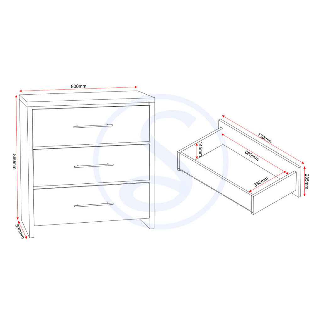Add practical style and everyday convenience to your bedroom with the Seville Wooden Chest of 3 Drawers from CozyFurnitureDirect. Designed to blend seamlessly with modern and classic decor alike, this chest offers ample storage for clothing, accessories, and essentials while maintaining a clean, minimalist look. Each drawer glides smoothly on durable metal runners, ensuring easy access and long-lasting reliability. Crafted from composite board with an elegant veneer finish, the Seville chest combines strength, style, and functionality. With its anti-tip strap included for added peace of mind, this piece is ideal for UK households looking for smart, space-saving storage.