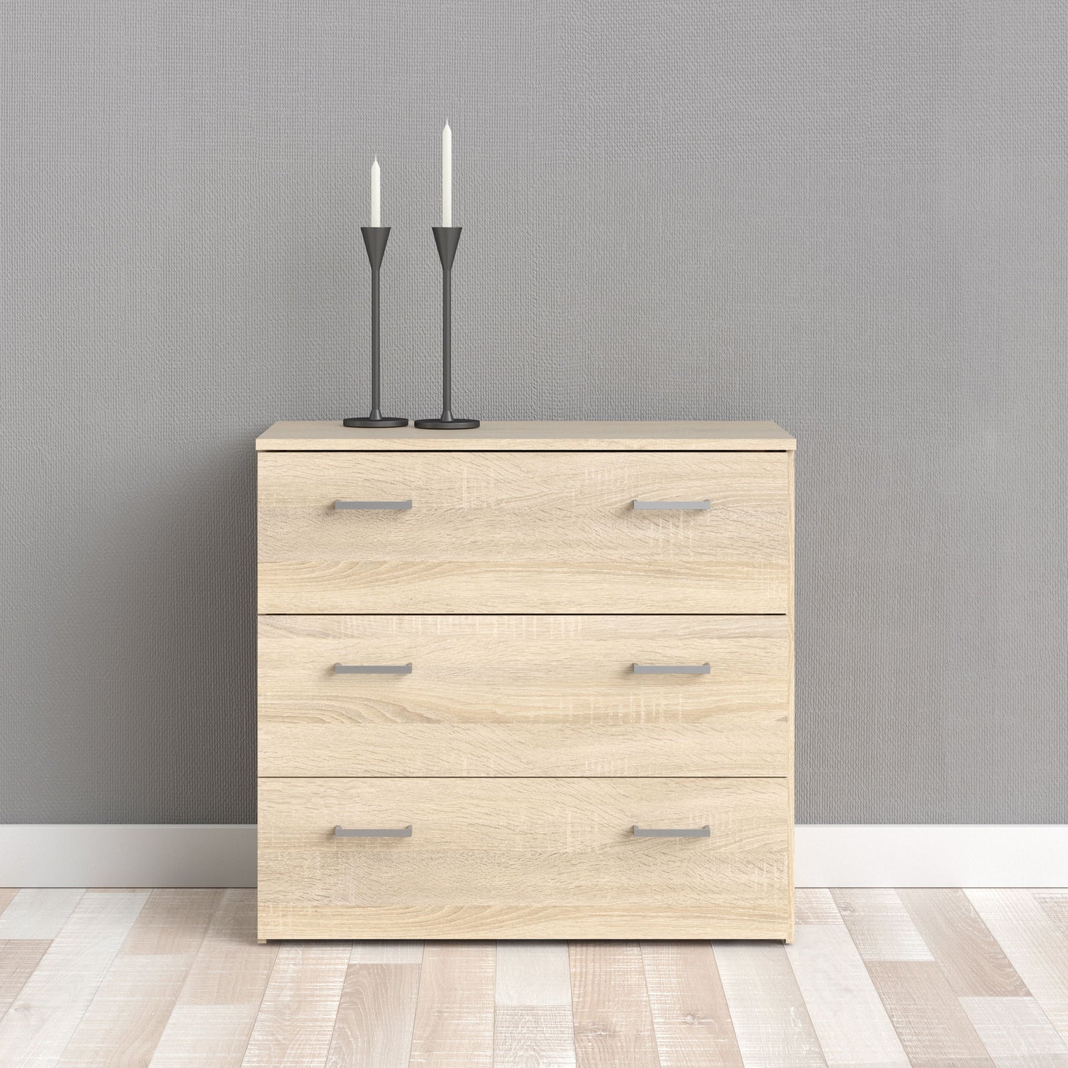 The Space Wooden Chest of 3 Drawers, available at CozyFurnitureDirect, is a practical and stylish storage solution designed for modern UK bedrooms. This chest from the Space collection maximises storage capacity while maintaining a minimal footprint, crafted from high-quality laminated board resistant to scratches, moisture, and heat. Made from PEFC certified sustainable wood in Denmark, it features easy self-assembly and includes anti-tip safety with wall fittings to ensure secure use.