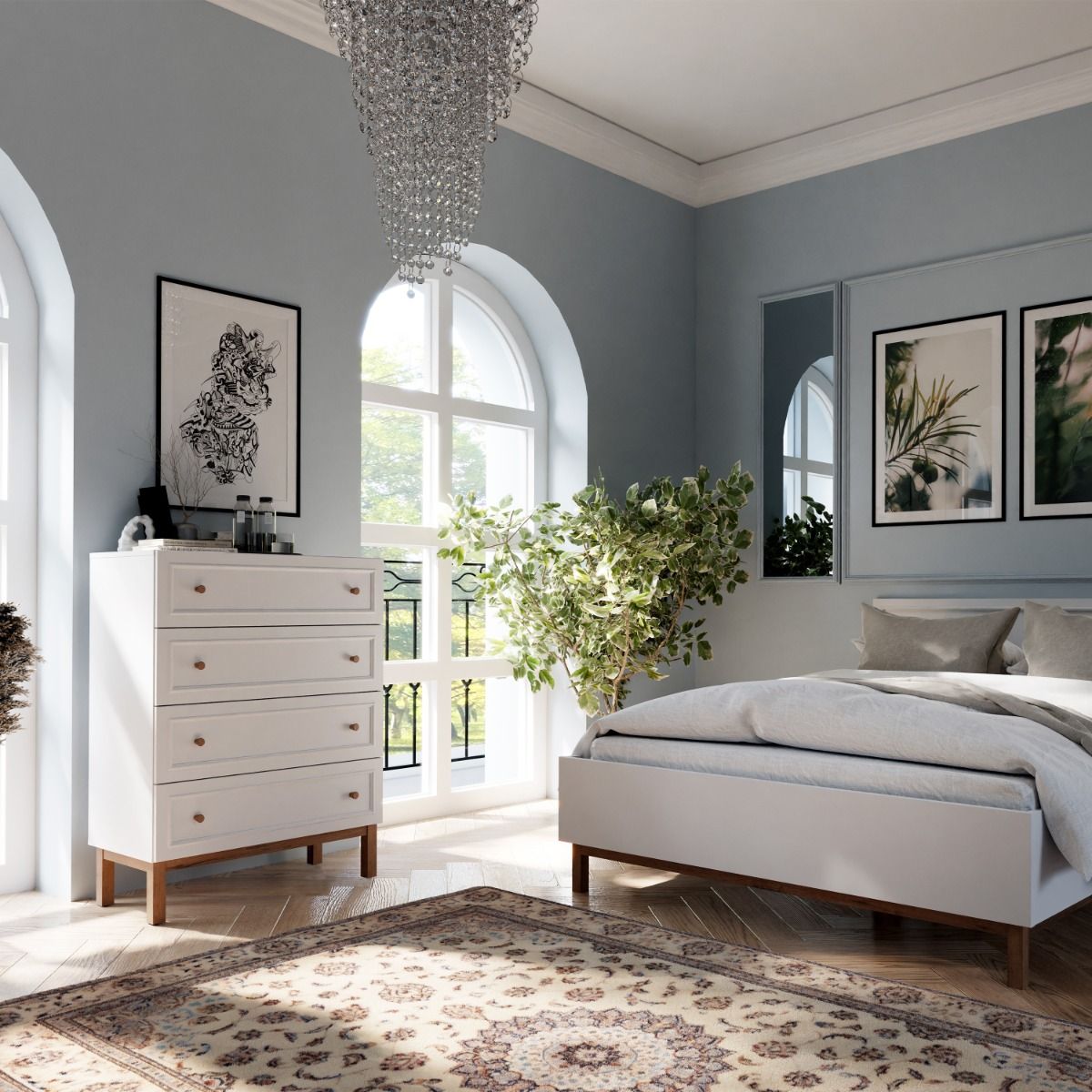 Add refined elegance and convenient storage to your home with the Wooden Chest Of 4 Drawers - Wensley, available exclusively at CozyFurnitureDirect. Designed in a harmonious blend of light grey and oak tones, this Scandinavian-inspired piece offers both beauty and practicality. Its sleek finish, clean lines, and natural oak accents bring warmth and calm to any interior, making it perfect for bedrooms, guest rooms, or hallways. With four spacious drawers on full-extension slides, it offers ample storage for clothes, accessories, and everyday essentials while keeping your space clutter-free. Crafted with durability and timeless style in mind, the Wensley chest effortlessly complements any UK home.