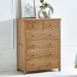 Add timeless charm and practical storage to your home with the Mallory Wooden Chest of 6 Drawers, available at CozyFurnitureDirect. Expertly crafted from solid oak and oak veneers, this beautifully made chest combines durability with elegant simplicity. The 4+2 drawer configuration - featuring two smaller drawers and four spacious ones - provides versatile storage for clothing, accessories, and everyday essentials. Finished with round silver knobs and a smooth oak sheen, the Mallory Chest complements both classic and modern interiors, making it a stylish and functional centrepiece for your bedroom.