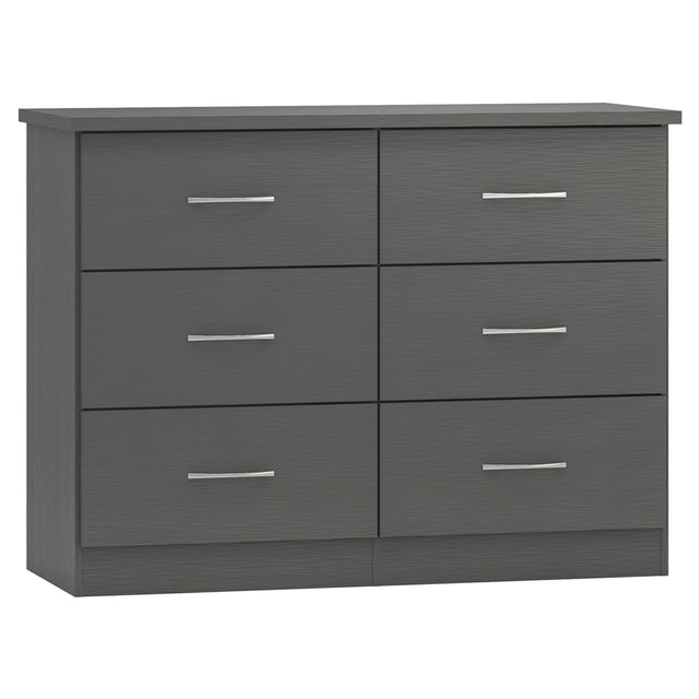 Elevate your bedroom storage with the Nevada Wooden Chest of 6 Drawers, available from CozyFurnitureDirect. Designed for spacious organisation in modern UK homes, this chest features six roomy drawers, each crafted with high-quality composite board and finished in a realistic 3D paint-effect veneer for a contemporary look that’s easy to maintain. The drawers glide smoothly on sturdy metal runners and are accented with sleek metal handles for effortless everyday use. The robust frame, reinforced with plastic feet and back panel strips, guarantees lasting stability, while an included anti-tip strap enhances safety. Ideal for master bedrooms or family spaces, the Nevada chest perfectly blends style, practicality and reliable craftsmanship.